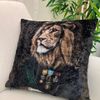 %100 Kadife Aslan Desenli Kırlent Yastık Kılıfı (Siyah)