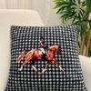 %100 Kadife At Desenli Kırlent Yastık Kılıfı (Siyah-Beyaz)