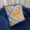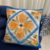%100 Kadife Desenli Kırlent Yastık Kılıfı (Turuncu-Mavi)