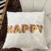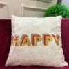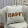 %100 Kadife Happy Yazı Desenli Kırlent Yastık Kılıfı (Beyaz)