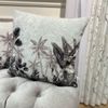 %100 Kadife Palmiye Desenli Kırlent Yastık Kılıfı ( Gri)