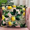 %100 Kadife Yaprak Limon Desenli Kırlent Yastık Kılıfı (Pembe)