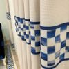 1/3 Sık Pileli Damalı Mckenzie Temalı Perde Mutfak - Bej-Mavi