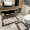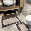 2 'li Leoar Desen Banyo Paspası - Kahverengi EBAT (60X100 - 60X50)