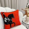 At Desenli Biyeli Kırlent Kılıfı 45x45 - TURUNCU