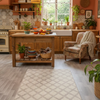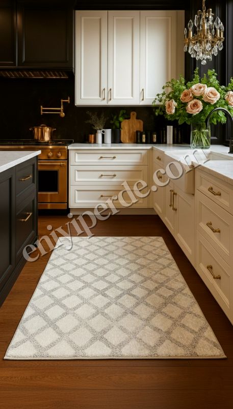 Baklava Desenli Bej Renk Kaymaz Taban Mutfak Halısı