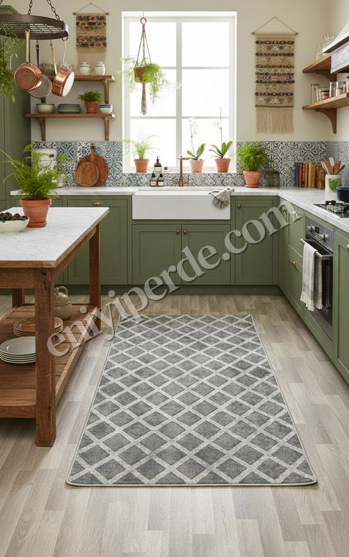Baklava Desenli Gri Renk Kaymaz Taban Mutfak Halısı