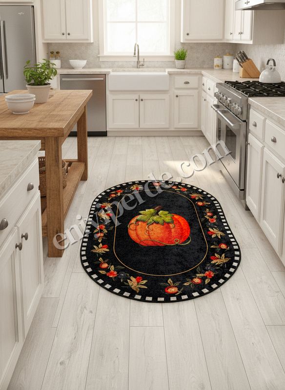 Balkabağı Desen Bordürlü Oval Mutfak Halısı
