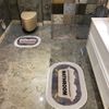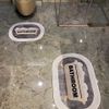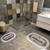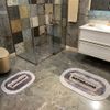 Bathroom Yazılı Desenli 2'li Kaymaz Taban OVAL Banyo Paspas Takımı (60X100 - 60X50) BEJ-GRİ