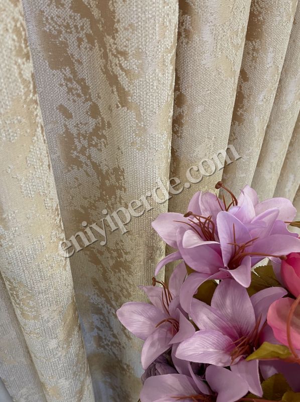 Bej Rengi Sönil Desen Jakar 1/3 SIK Pile Jakar Fon Perde