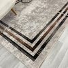 BEJ Renk Çizgi Desenli Kaymaz Taban Çerçeveli Halı