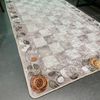 Bej Turuncu Dama Desenli Kaymaz Taban Mutfak Halısı