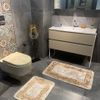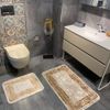 Bordür Desenli 2'li Lateks Taban Banyo Paspas Takımı BEJ-ALTIN (60X100 - 60X50)