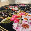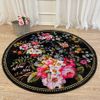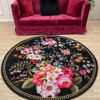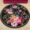 Çiçek Desenli Dekoratif Deri Taban Yuvarlak Halı - SİYAH