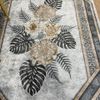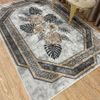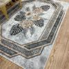 Çiçek Desenli Lateks Deri Taban SAÇAKSIZ Halı - GRİ / VİZON