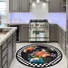 Çiçekli Damalı Yuvarlak Lateks Taban Saçaksız Mutfak Halısı - SİYAH