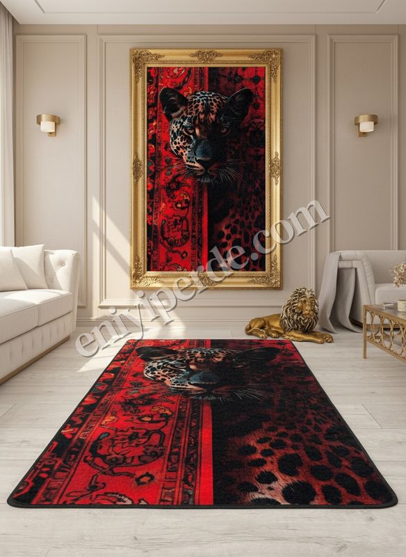 Çita Desenli Kırmızı Dekoratif Lateks Halı