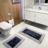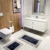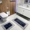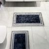 Çizgili Desenli 2'li Lateks Deri Taban Banyo Paspas Takımı (60X100 - 60X50) Lacivert Gri