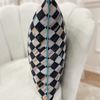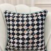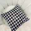 Damalı Keten Görünümlü Kenar Mavi Biyeli Kırlent Kılıfı (45x45)