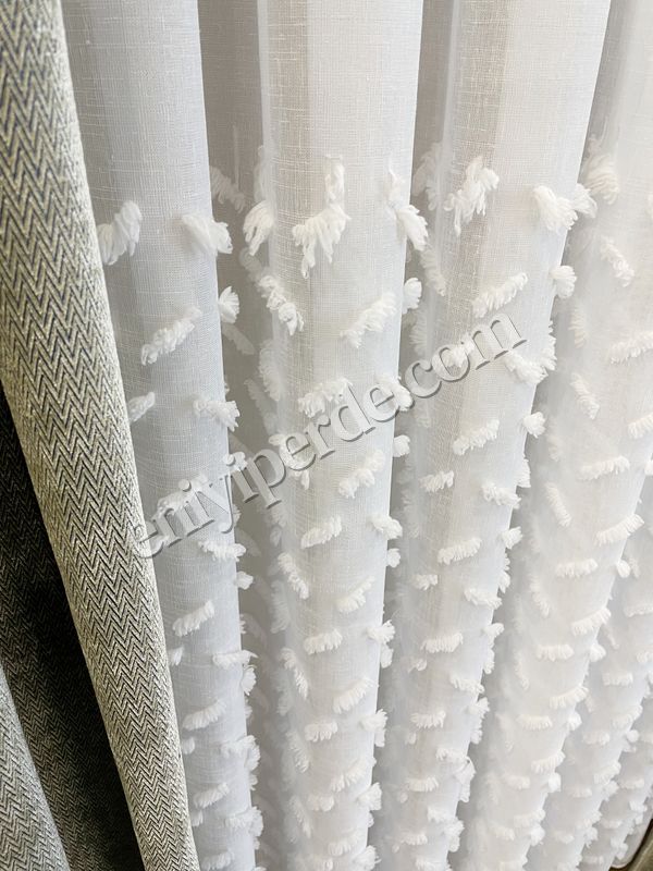 Ekru-Kırık Beyaz- 1/3 SIK Pile - Ponpon Pufy Keten Görünümlü Tül Perde