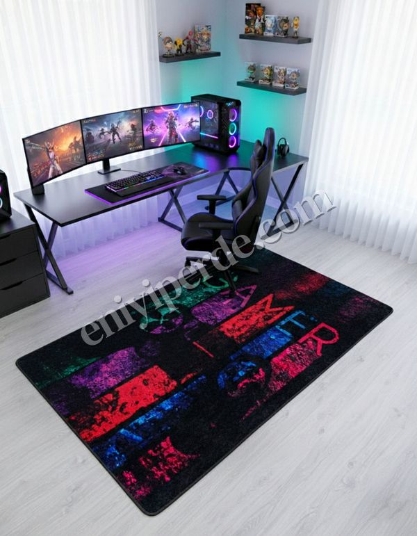 Gamer Oyuncu Siyah Genç Odası Lateks Deri Taban Halı