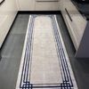 Geometrik Geçişli Şönil Görünüm Lateks Kaymaz Taban Leke Tutmaz SAÇAKSIZ Halı - LACİVERT/GRİ