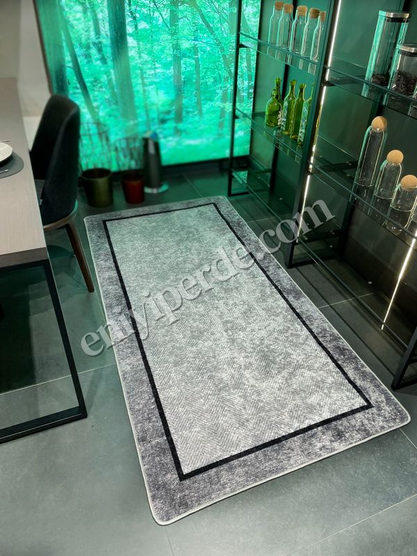 GRİ Jüt Sisal Görünüm Bordürlü Kaymaz Taban Yolluk Mutfak Halı