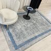 Gri Renk Mavi Bordürlü Desen Lateks Deri Taban Halı