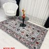 Gri Renk Vintage Çiçekli Lateks Kaymaz Taban Halı