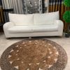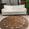 Hasır Jüt Görünümlü 3D Renkli Lateks Deri Taban Su Geçirmez Leke Tutmaz Yuvarlak Halı