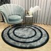 Hasır Jüt Sisal Bordürlü Görünümlü Yuvarlak Dekoratif Halı Gri - Lacivert