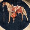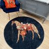 Horse At Desen Lateks Taban Yuvarlak Halı - LACİVERT