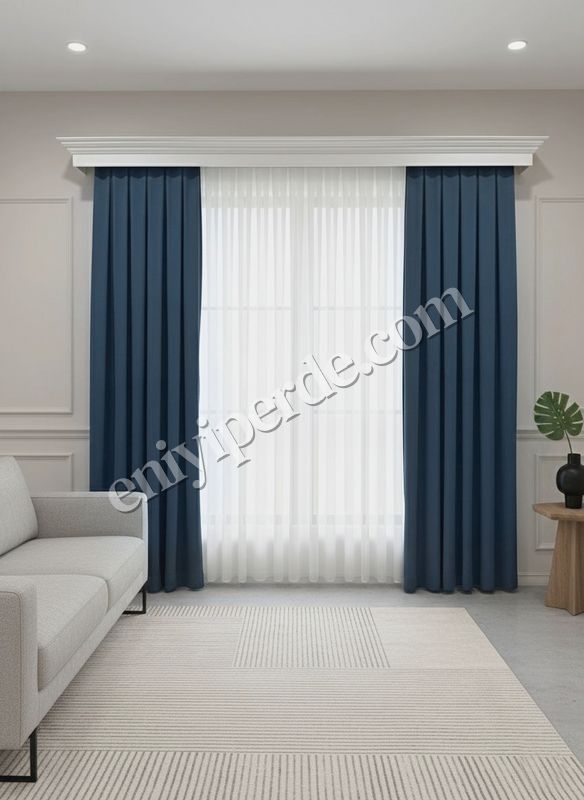 INDİGO MAVİ Renk 1/3 SIK PİLE Petek Dokuma Yumuşak Yapılı Panama Fon Perde