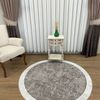 Jüt Görünümlü Yıkanabilir Yuvarlak Kaymaz Taban Salon Halısı Mutfak Halısı Koridor Halısı - Gri - Siyah
