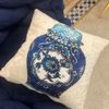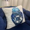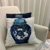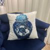 Kadife Vazo Desenli Kırlent Yastık Kılıfı (beyaz-mavi)