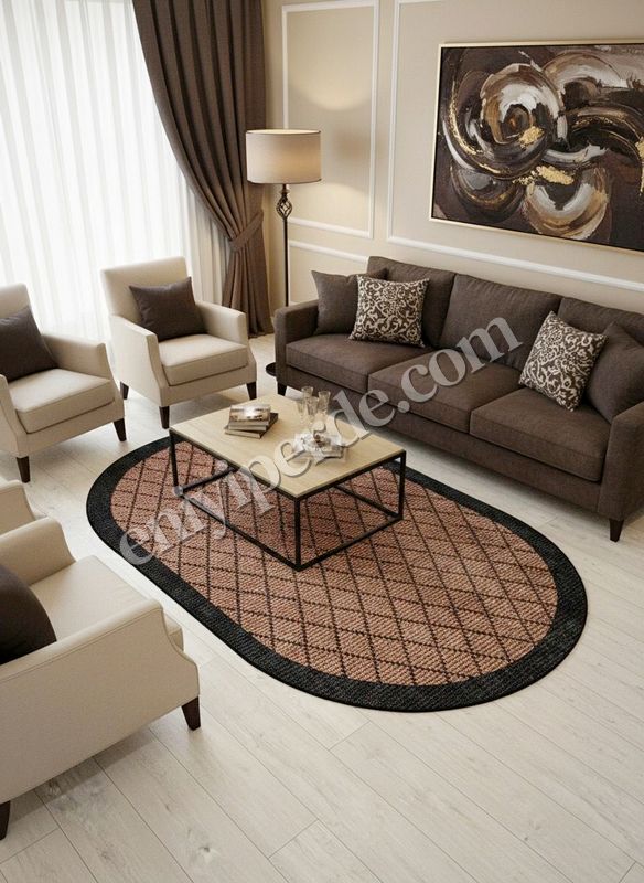 KAHVERENGİ-SİYAH Jüt Sisal Görünüm Bordürlü Kaymaz Taban Yolluk Halı
