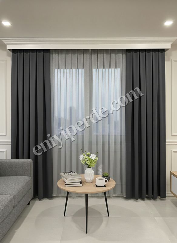 KOYU FÜME Renk 1/3 SIK PİLE Petek Dokuma Yumuşak Yapılı Panama Fon Perde