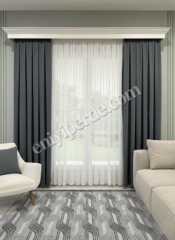 KOYU GRİ Renk 1/3 SIK PİLE Petek Dokuma Yumuşak Yapılı Panama Fon Perde