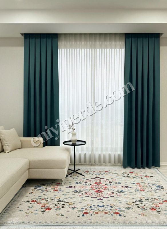 KOYU YEŞİL Renk 1/3 SIK PİLE Petek Dokuma Yumuşak Yapılı Panama Fon Perde