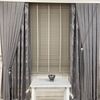 Ahşap jaluzi perde alınlığının şeffaf aparatlar yardımıyla perde üzerine takılması