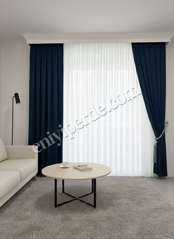LACİVERT Renk 1/3 SIK PİLE Petek Dokuma Yumuşak Yapılı Panama Fon Perde