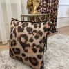 Leopar Desenli Keten Görünümlü Biyeli Kırlent Kılıfı 45x45