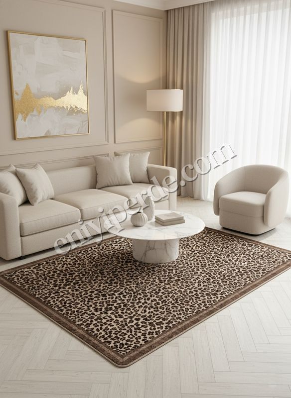 Leopar Desenli Lateks Deri Taban Halı