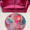 Pembe Disko Topu Şekilli Daire Lateks Taban Halı
