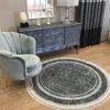 Şönil Düz Çizgili Lateks Kaymaz Taban Saçaklı Yuvarlak Halı