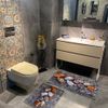 Taş Ayak İzi Desenli 2'li Kaymaz Taban Banyo Paspas Takımı (60X100 - 60X50) GRİ