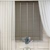 Salon Perdesi: Salon perdesi olarak son yıllarda çok sık tercih edilen doğal ahşap jaluzi perdeler fon perdelerle ve tüllerle harika bir uyum içinde göz dolduruyor.