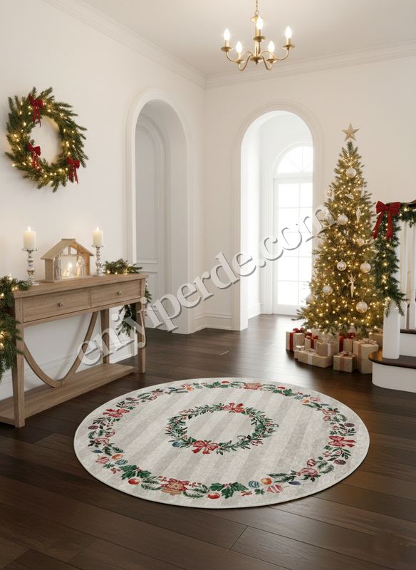 Taş Rengi - Yeniyıl Konsept Yılbaşı Mutfak Antre Halısı