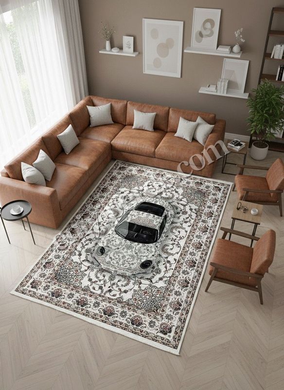 Vintage Araba Desenli Lateks Taban Halı