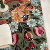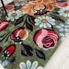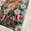 Yeşil Çiçek Desenli Floral Lateks Taban Halı